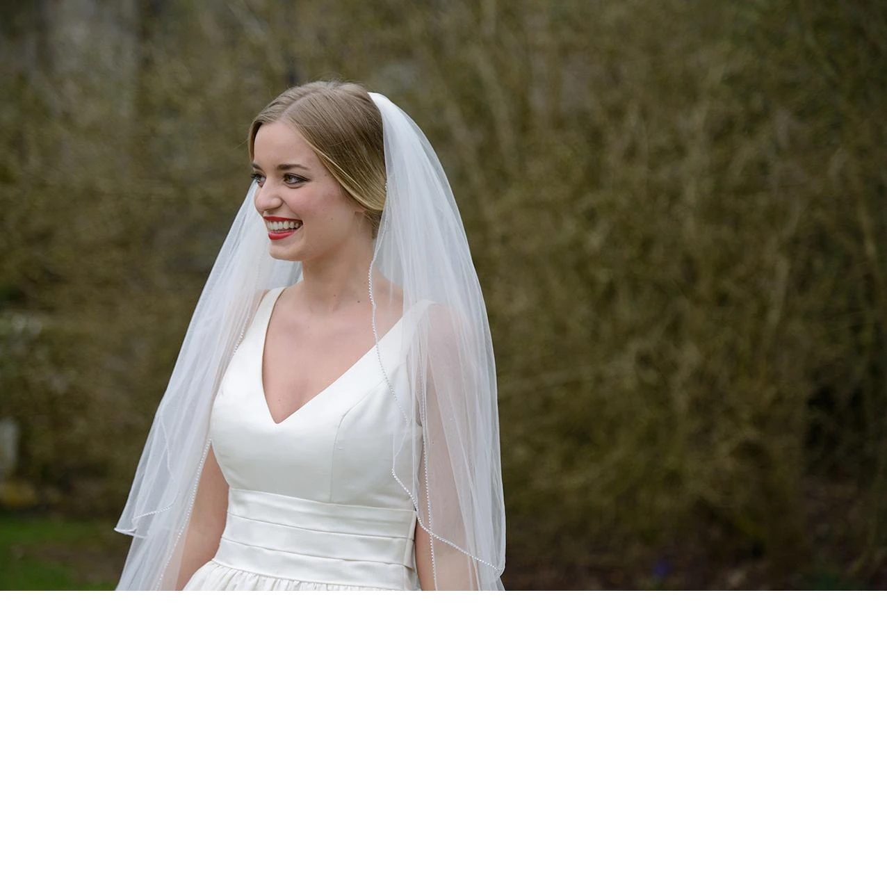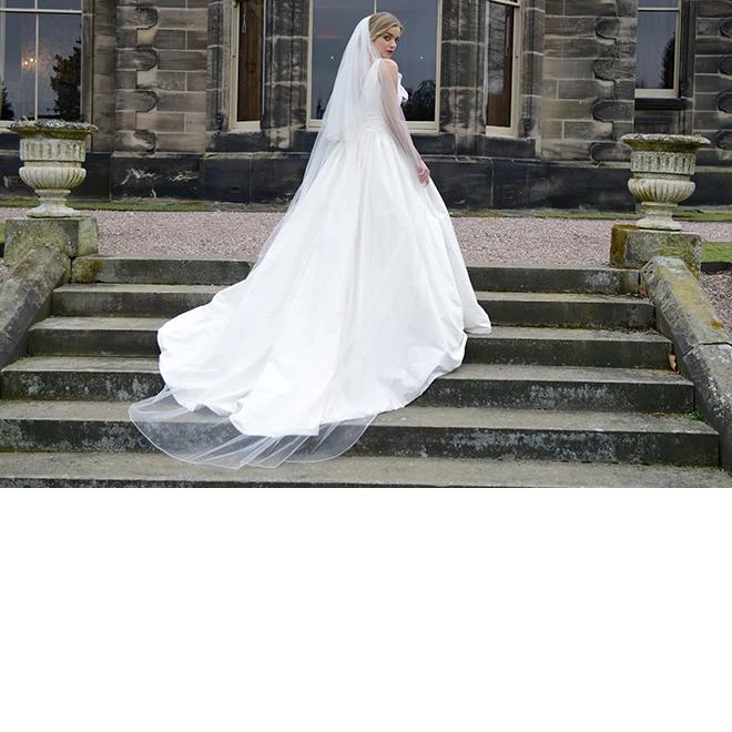 Knightsbridge is the perfect full length Swarovski veil for the bride who wants to be the centre of attention on her wedding day -all the detail for this stunning veil is along the edges and on the train.