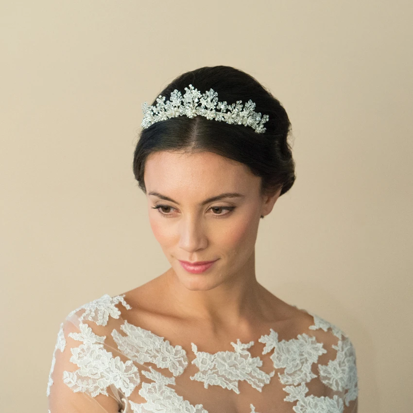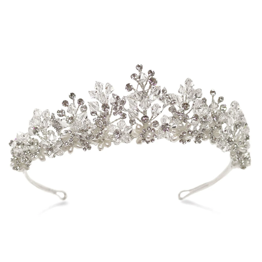 Ivory and Co Laluna pearl tiara. A spectacular, romantic pearl, crystal and bead tiara with distinct floral elements for a feminine finishing touch!