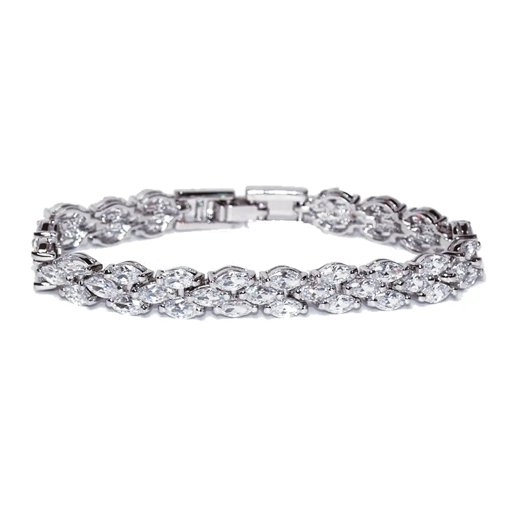 Ivory and Co Jewellery – Lincoln Bracelet. Elegant, luxury bracelet made using interlocking navette shaped stones for ultimate sparkle with any outfit!