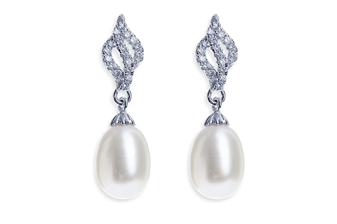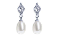 Ivory and Co Lisbon Earrings. These earrings are complete sophistication. A single pearl hangs below an intricate design of pave set stones! Simple in their elegance and ideal for brides wanting classic and delicate jewellery featuring pearls.
