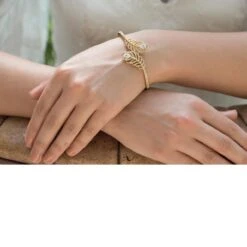 Ivory and Co Jewellery – Long Island Gold Bracelet. Contemporary and completely unique design which echoes deco styling with a luxury, peacock / father motif made using Swarovksi crystals and Cubic Zirconia.