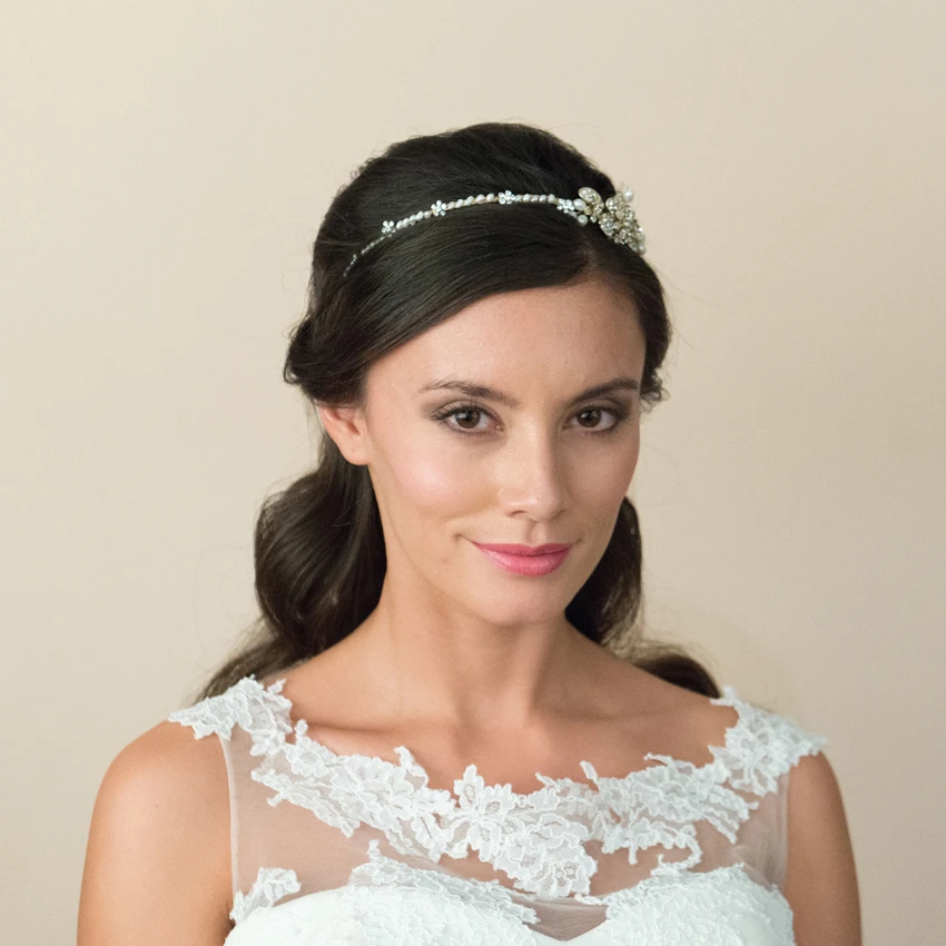 Ivory and Co Lulu Gold Pearl Bridal Headband. A beautiful, gold pearl and crystal bridal headband with pretty pave set florettes decorated with sprays of Swarovski crystals and freshwater pearls for a vintage-style look!.