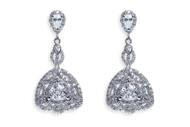 Ivory and Co Luxembourg Earrings. This is a dainty and delicate set of earrings featuring tiny pave stones set in a pattern inspired by Art Deco jewellery.