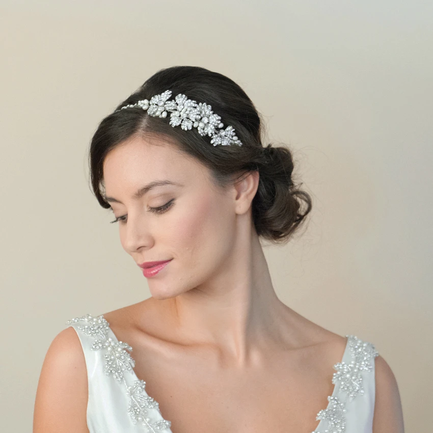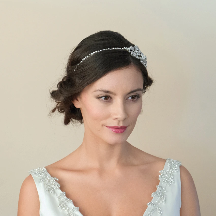 A pretty bridal hairband for brides who want to pick up any crystal or pearl detailing in their wedding dress – the Maisie is perfect as the design is quite classic.
