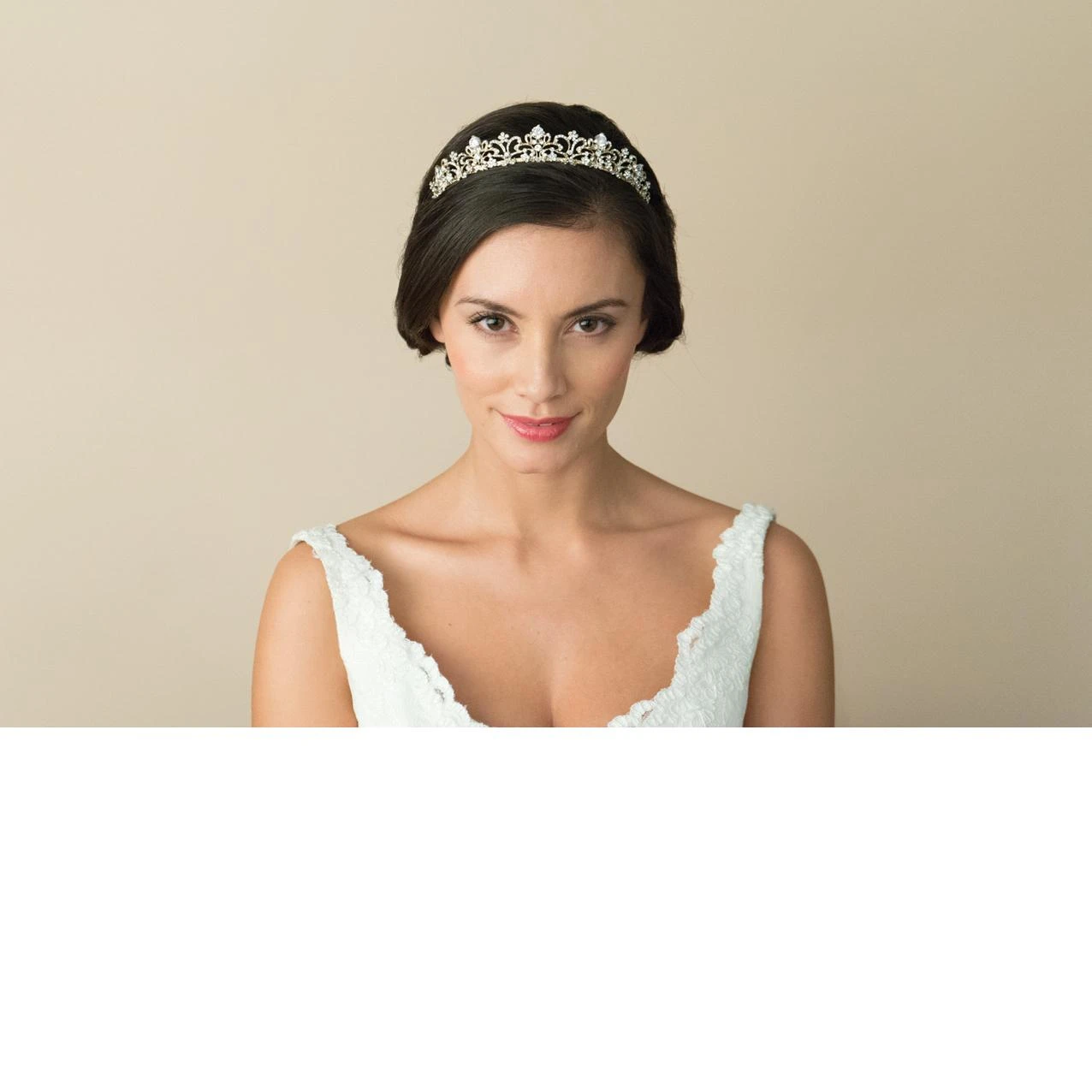 Marion is the perfect gold tiara for the bride who wants a sophisticated up-do hair style as it will look stunning as the detailed pattern tapers down the sides!