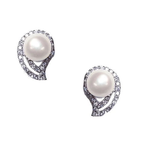 Ivory and Co Jewellery – Montana Stud Earrings. Delicate, pearl and crystal stud earrings with sparkling swarovski crystal and pearl centre finish in the shape of an overturned teardrop for added elegance!