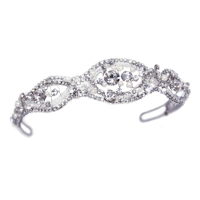 Ivory and Co Naomi deco inspired headpiece. A beautiful, tiara band style bridal piece with man-made pearls, Swarovski crystals and pearlised seed beads in a Twenties inspired design!
