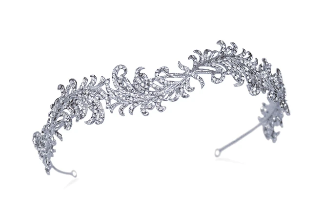 Ivory and Co Nightingale tiara band. An totally unusual and simply gorgeous tiara, set with tiny pave solitaire cut stones that have been set along a beautifully designed garland inspired by the jewellery of the 1920’s to look like delicate feathers!