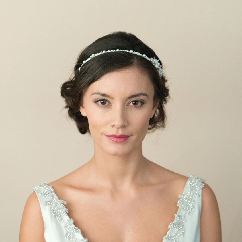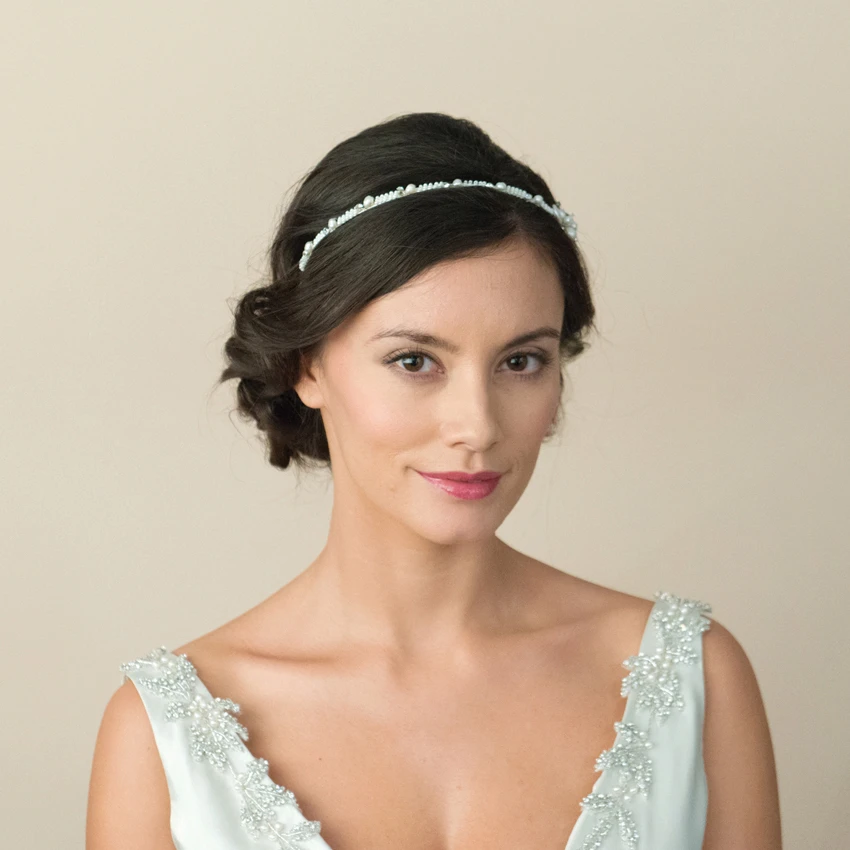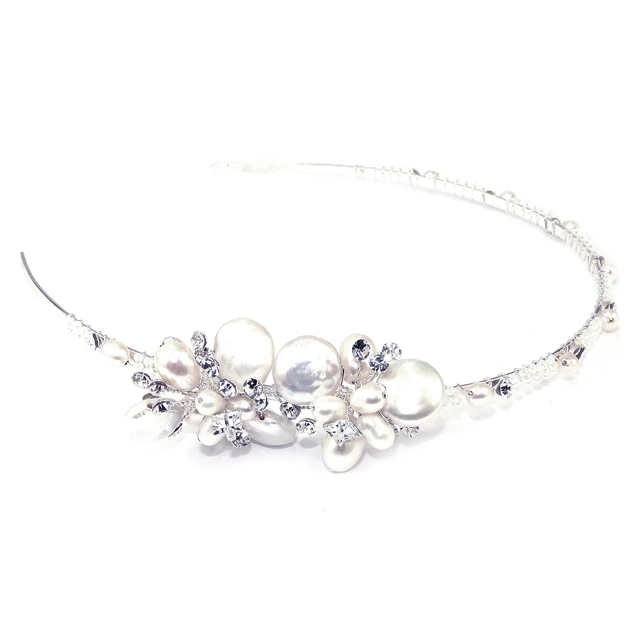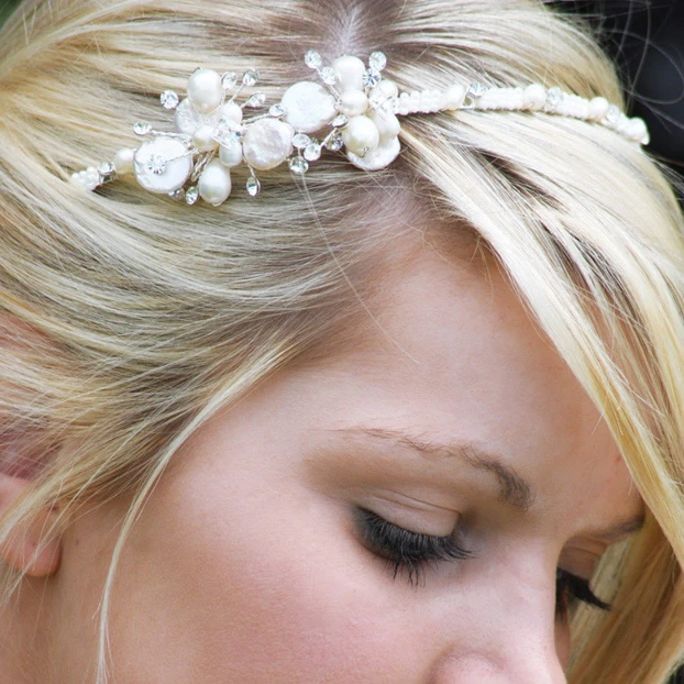 Ivory and Co Paradise pearl bridal headband. A stylish, coin pebble and oval pearl shaped headpiece for a beach inspired and naturalistic finishing touch!