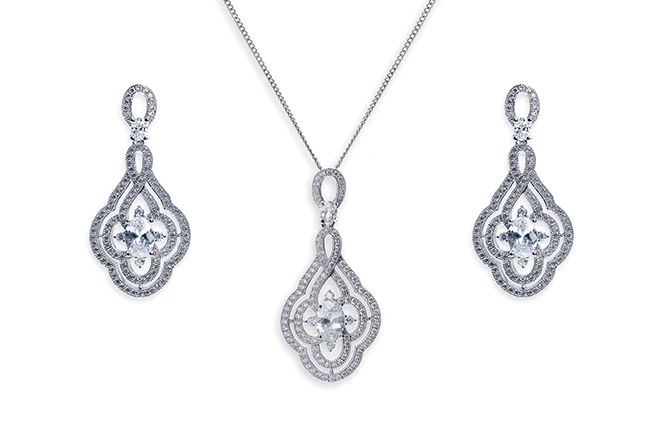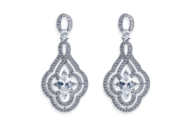 Ivory and Co Park Avenue Earrings. Sparkling and delicate earrings perfect for those sophisticated and elegant bridal gowns. An intricate pattern of looping scrolls around a sparkling oval cut stone!