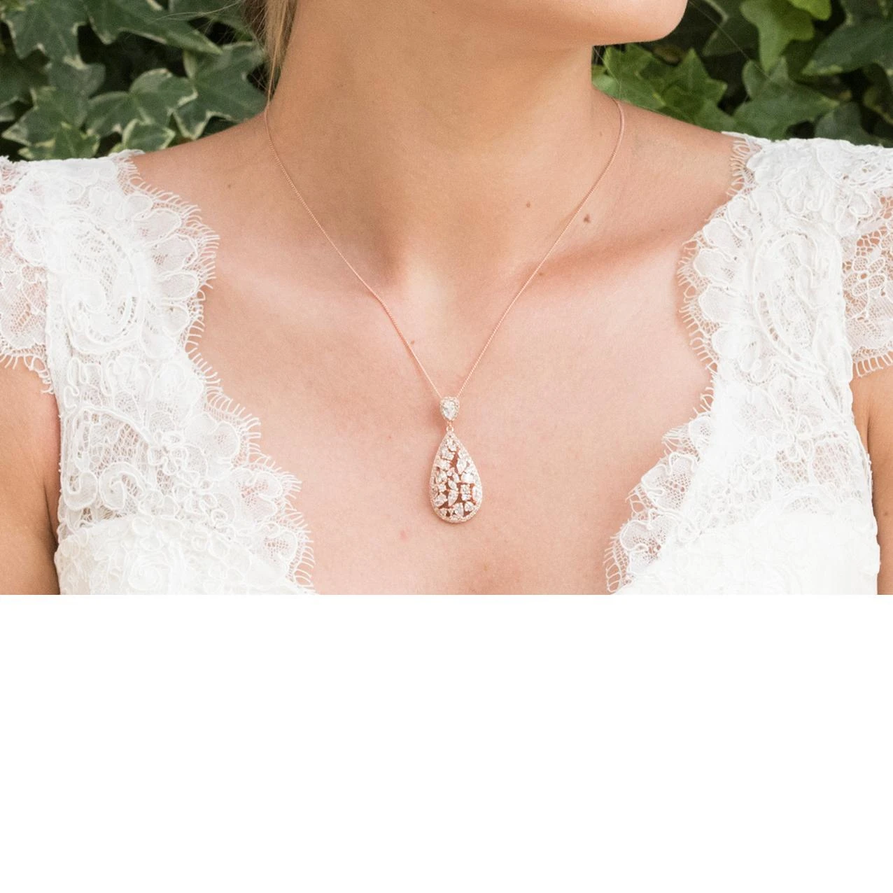 This is a really eyecatching pendant. An array of marquise and solitaire stones make up this intricate and dazzling pattern. Perfect for brides wanting elegant and sparkling jewellery.