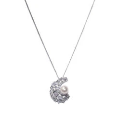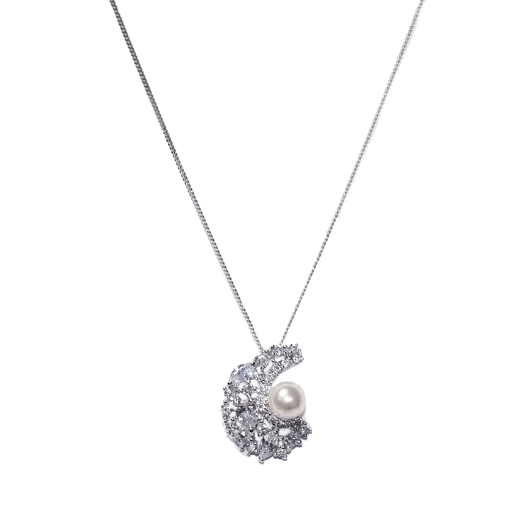 Ivory and Co Jewellery – Pavilion Pendant. A unique, curved Swarovski crystal cluster design necklace with a lustrous Ivory pearl finishing touch!