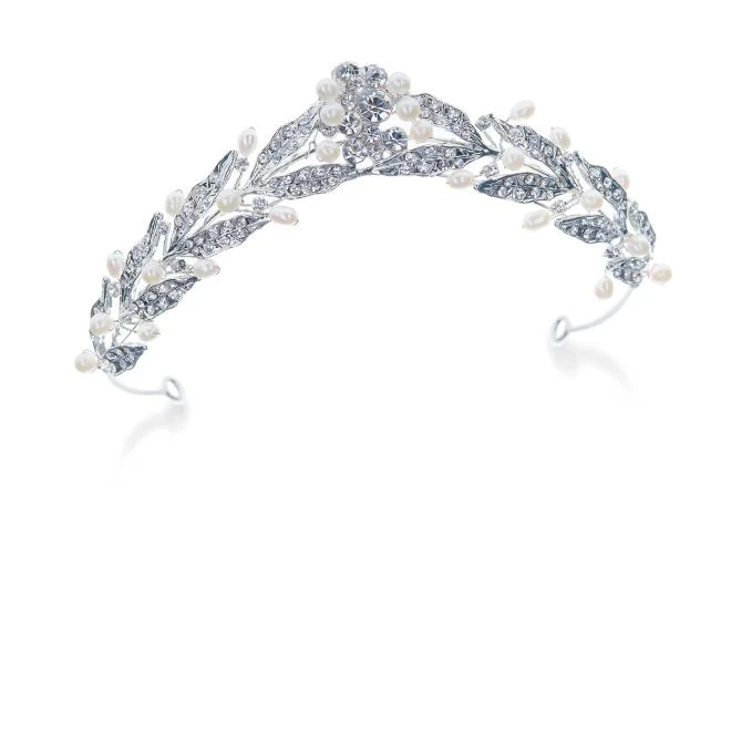 Ivory and Co Persphone. An unusual but stunning tiara, featuring solitaire stones, real ivory freshwater pearls and natural manmade lustre pearls to give that vintage feel!