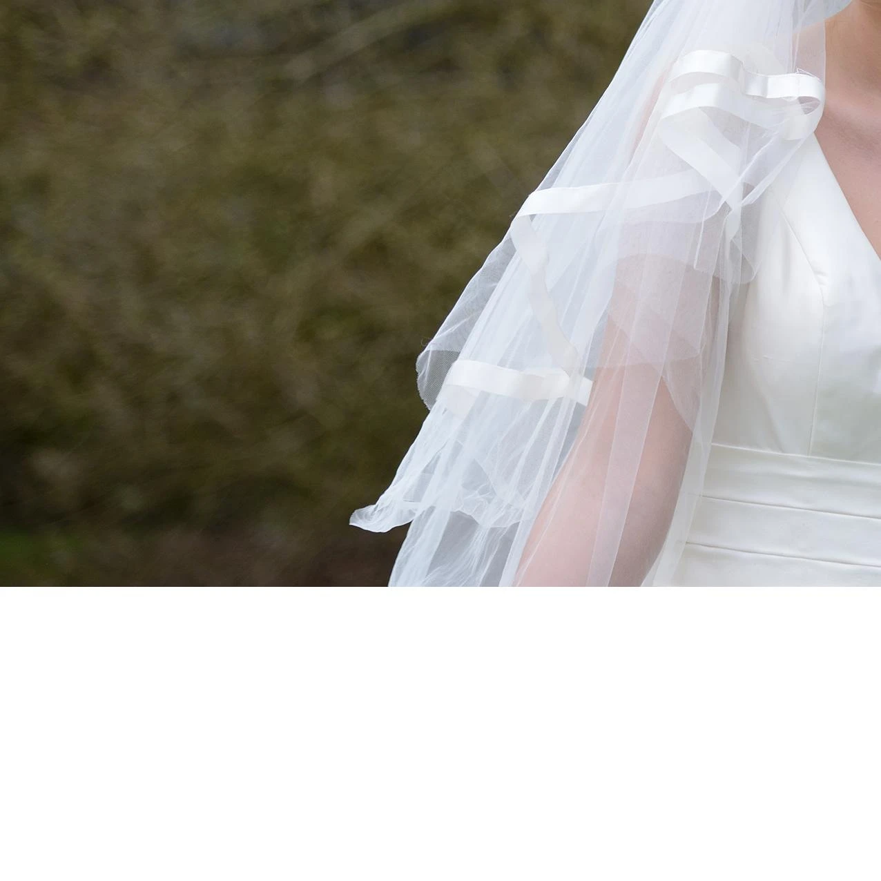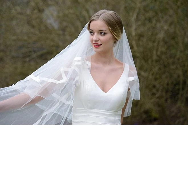 • Featuring a 2 cm satin ribbon stitched inside the edge so it cascades down around the shape of the veil