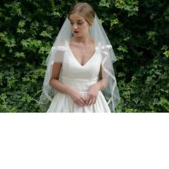 • Featuring a 2 cm satin ribbon stitched inside the edge so it cascades down around the shape of the veil
