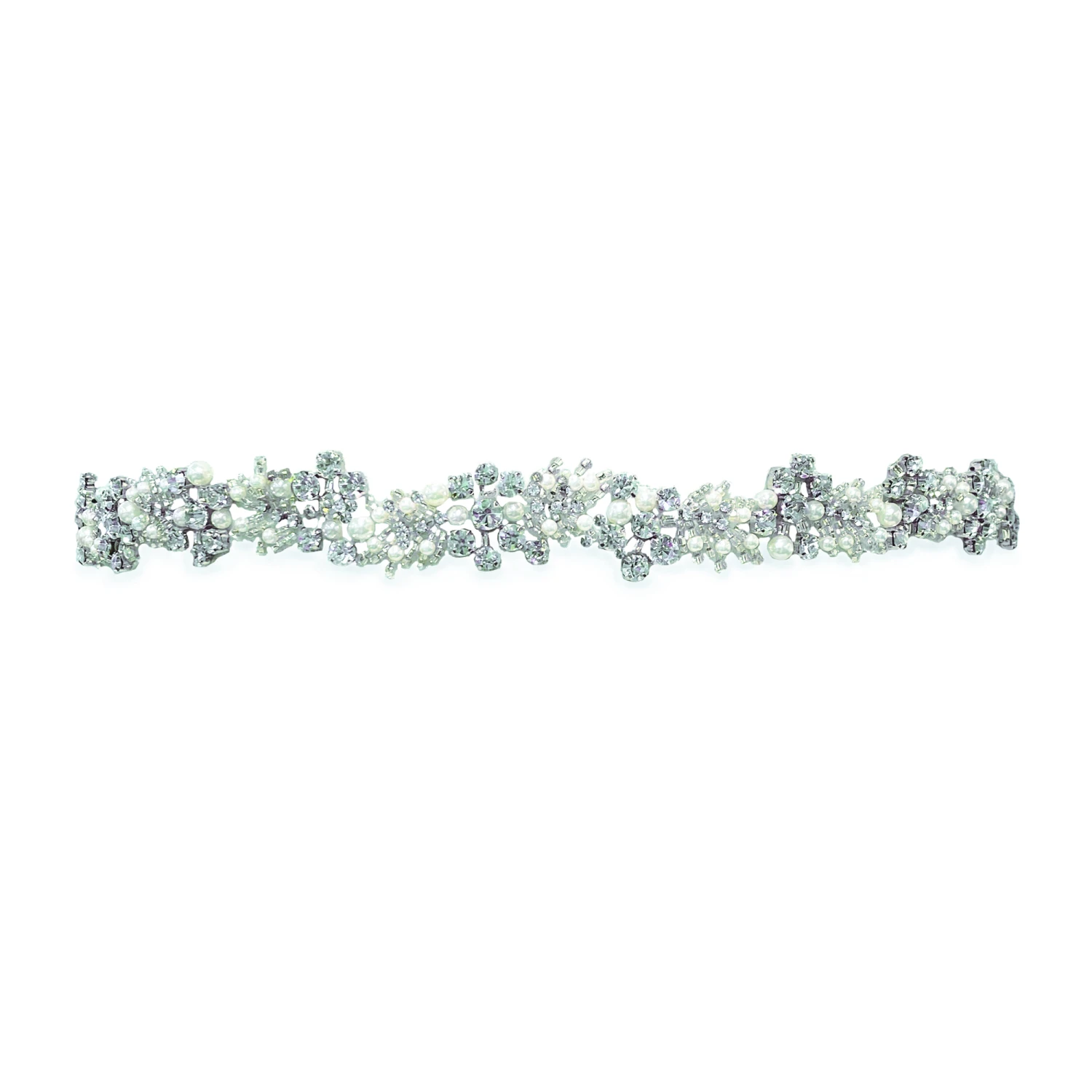 Ivory and Co Silver Cluster Bridal Belt. A beautiful statement belt with amazing sparkle and shine emphasised by the silver cluster elements and clear cut crystal stones, intertwined with pearls in a floral style along the belt!