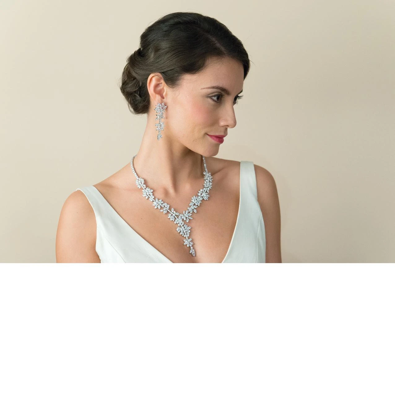Ivory and Co Starry Night Necklace. As the name suggests this necklace is so very special and light up like stars for a delicate, pretty and sparkly look for the bride. Set with marquise and solitaire stones they make up a fabulous and intricate pattern!Â