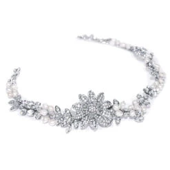 Ivory and Co Talia bridal hair vine. A beautiful, luxury vine headpiece with side flower detail, crystal trailing vine leaves and clusters of freshwater pearls for a classic touch!
