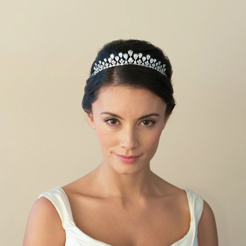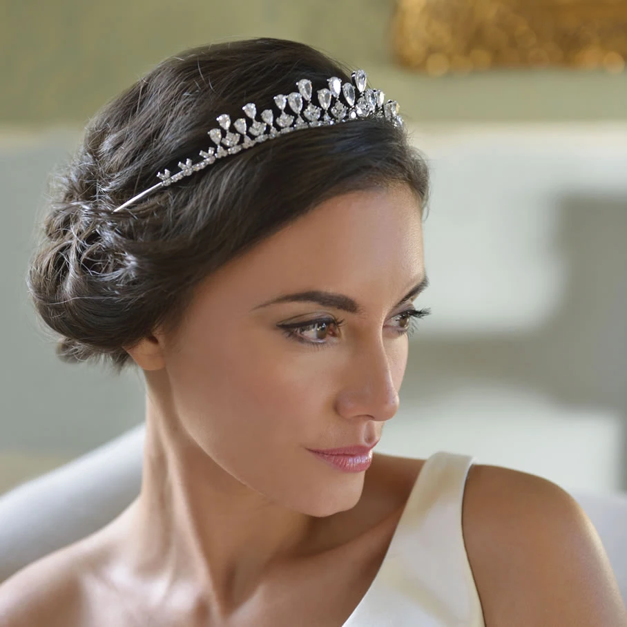 Crystal cubic zirconia tiara with teardrop design – ideal for a glamorous look with any style of wedding dress!