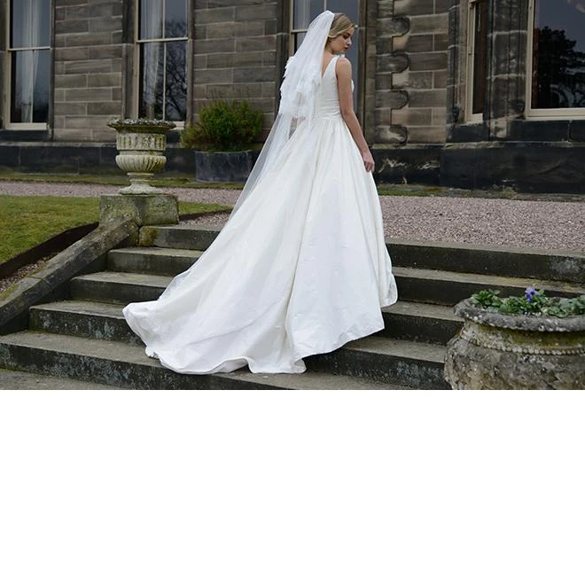 Ivory and Co Versailles Chapel length veil featuring a delicate lace edged blusher. The most perfect veil for that bride wanting a classically romantic look.