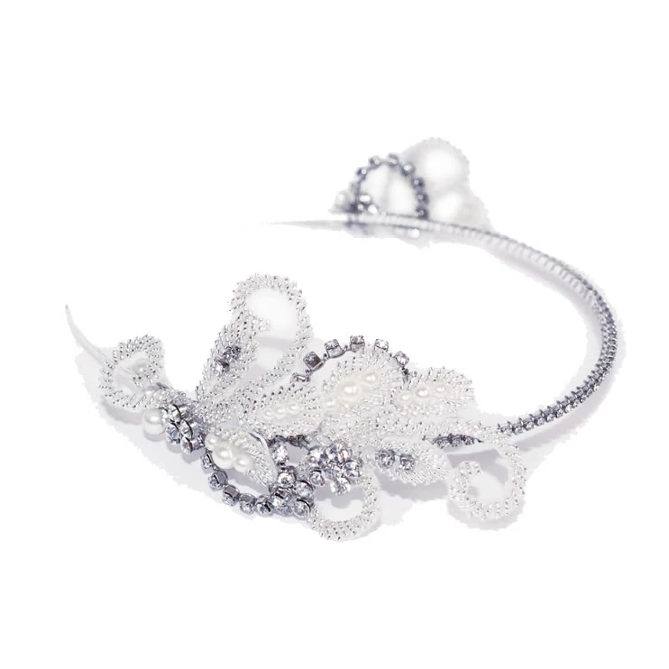 Victoria by Ivory and Co. A contemporary headband inspired by Regency period design – a beautiful and unique vintage swirl assymetric headband made using a combination of off-white organza fabric adorned with silver beads and interspersed with swarovski crystals and ivory pearl clusters!
