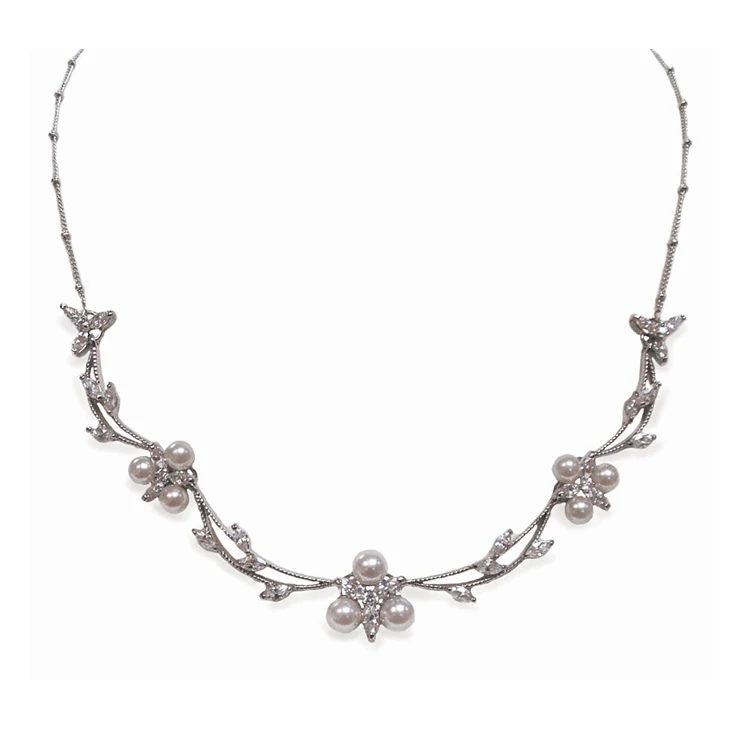 Waterlily pearl and crystal necklace by Ivory and Co. Round-shaped bridal necklace with clusters of pearls offset with sparkling cubic zirconia stones!