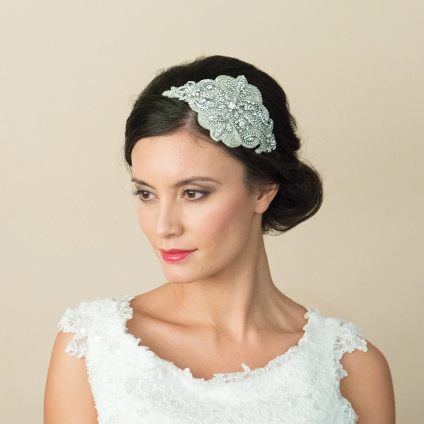 Ivory and Co Zara fabric bridal headband, A vintage-style, luxury fabric bridal headpiece with beautiful floral motifs embellished onto lightweight organza Swarovski crystals and silvery beads for a feminine and romantic finishing touch!