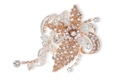 Tallulah is a beautiful and subtle hair clip. The design is forged to create a leaf encrusted with solitaire stones and adorned with a ribbon swirl and crystal cut beads.