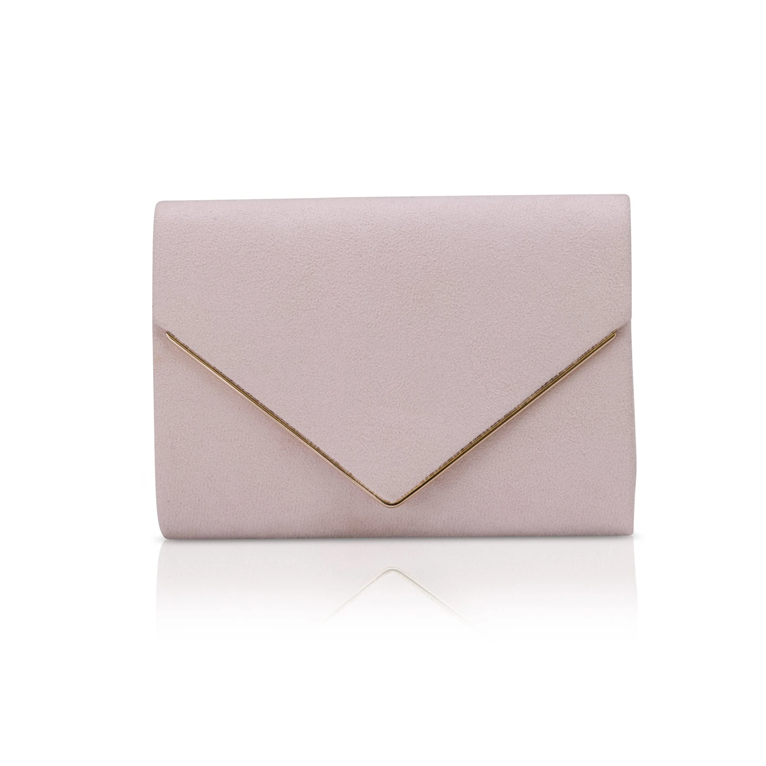 Perfect Bridal Bea Bridal bag. A modern, clutch bag with an envelope flap fastening in Blush (Taupe) Ultrasuede! A matching satin lining and a chain strap to enable a hands free mode!