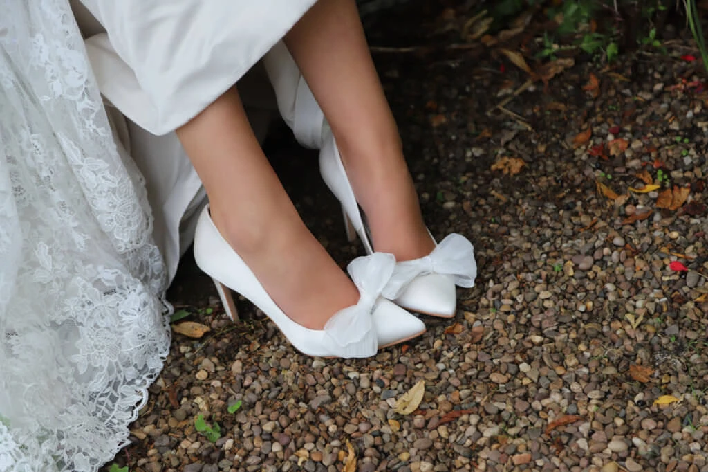 Perfect Bridal Daphne Shoe Trims. Daphne is a quality bridal shoe trim in a pretty bow design made with a delicate ivory organza textile!