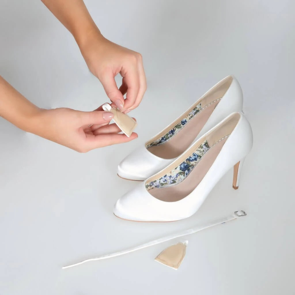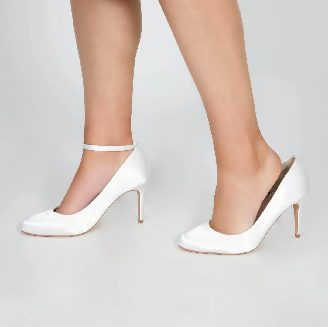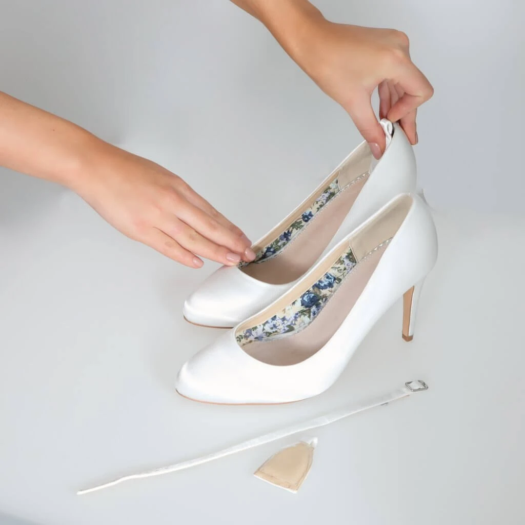 Perfect Bridal detachable ankle strap crafted from dyeable ivory satin can be fitted to any ivory bridal court shoe giving that extra support and safe feeling.