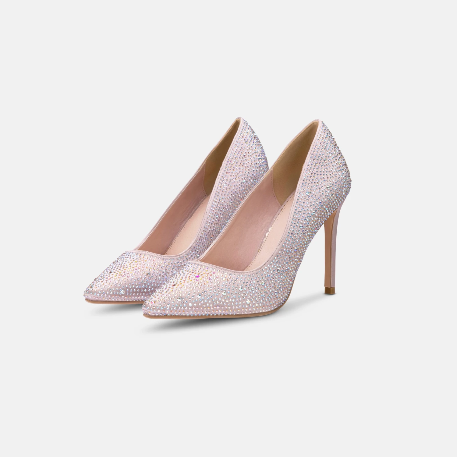 Perfect Bridal Electra Shoes in Taupe Satin with Heat-seal crystals. Electra are a sparkly satin court shoe with a delicately pointed toe, slim heel and luxury leather insole. Perfect to add that sparkle to any type of event!