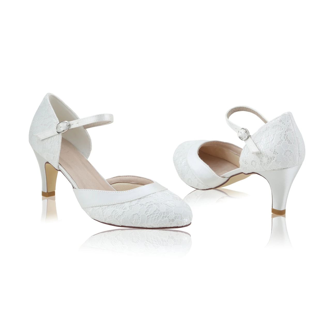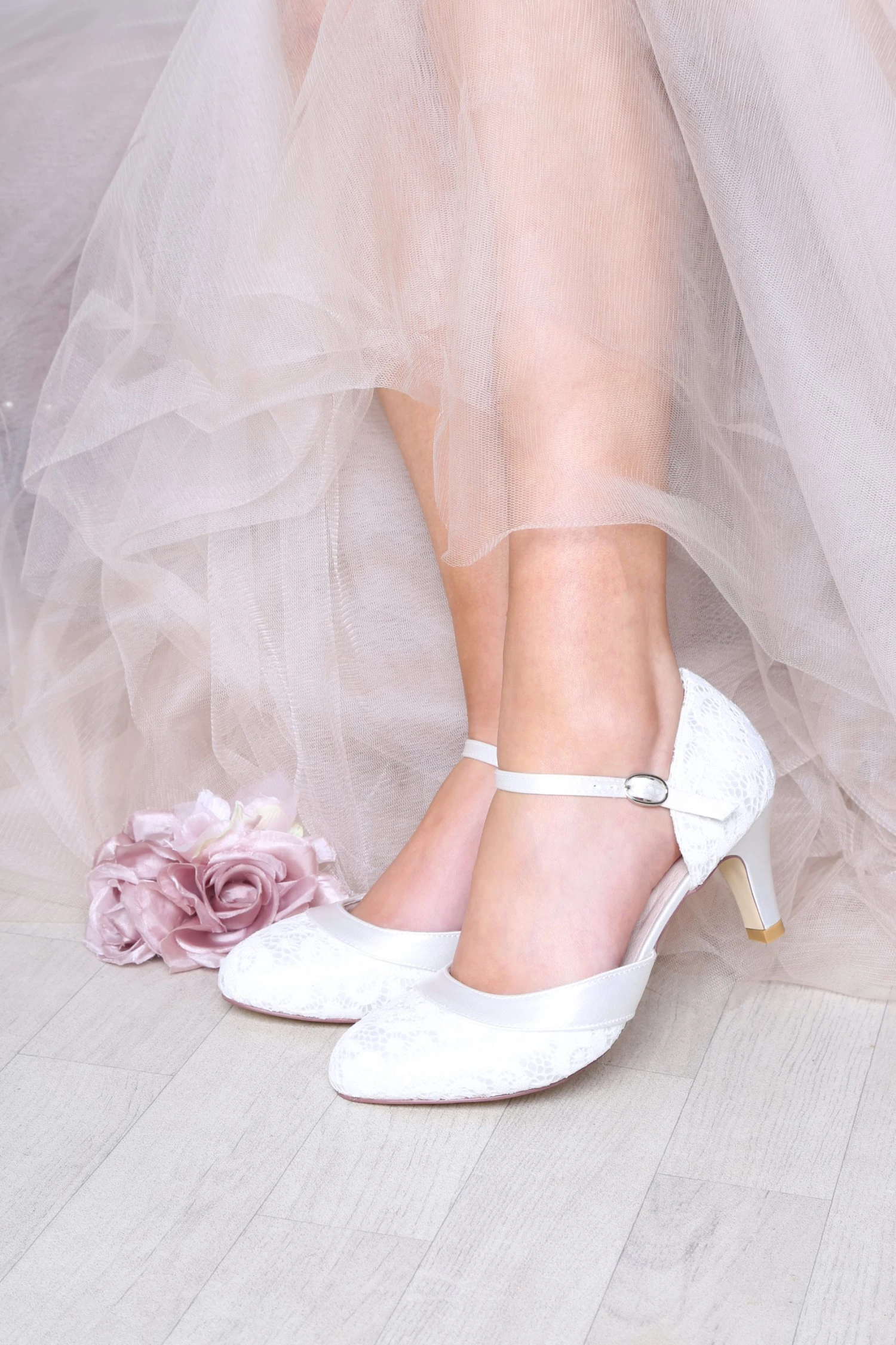Perfect Bridal Elsa Shoes. A perfectly stunning, lace bridal shoe with a fully enclosed toe and heel with an adjustable ankle strap to ensure you feel secure and confident and a Wide Fit (EE) for extra comfort!