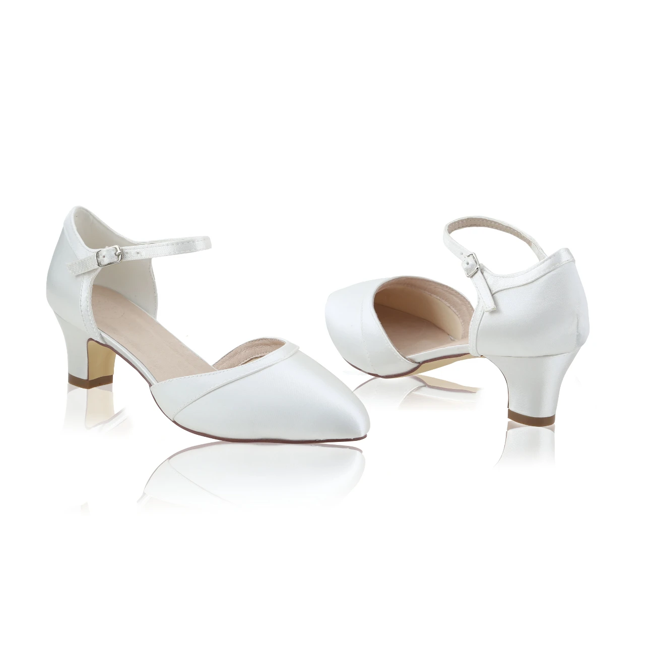 Perfect Bridal Ingrid Wedding Shoes in Ivory Satin. Ingrid shoes have a neat little heel that makes these vintage inspired satin full toe court sandals oh so comfortable on that special day!