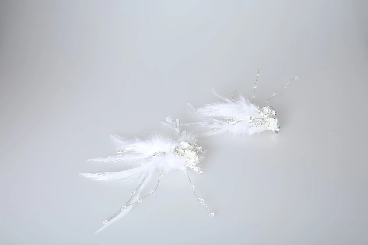 Perfect Bridal have launched a whole new range of hair accessories and brought them to the bridal world one of them being this stunning and delicate vintage inspired feather bridal hairclip with sprays of white feathers delicate glass beads and a delicate floral centre piece embellishment to finish!