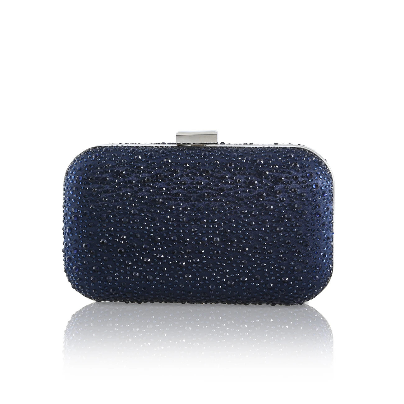 Perfect Bridal Sammy Bridal bag. A modern, assymetric clutch bag with a clip top fastening presented in a navy crystal encrusted finish!.