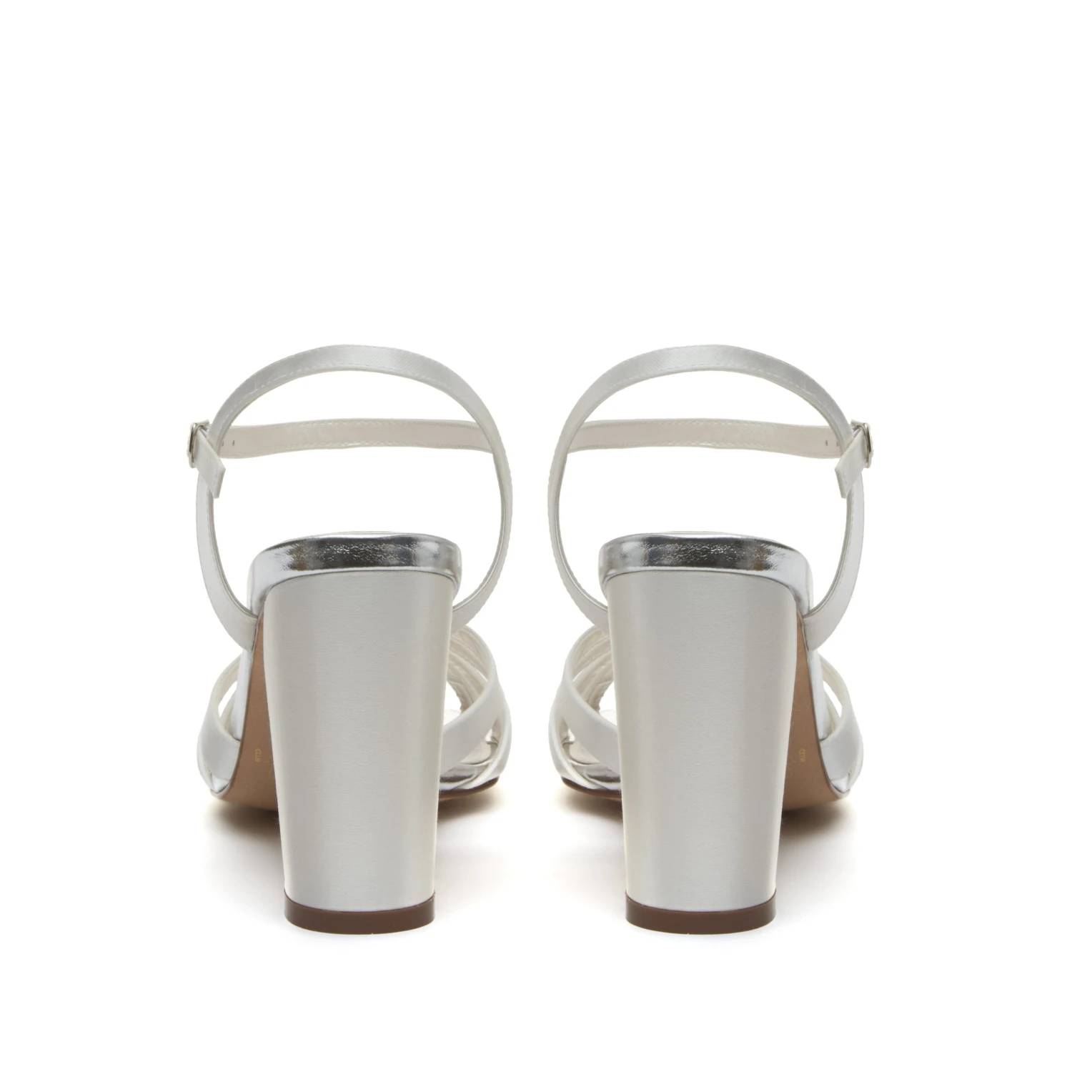 Blake βΒ Ivory Satin , Strappy sandal with a lattice strap front.Β These sandals have a buckle fastening ankle strap and are finished with a shiny leather trim. The block heel gives you all day balance and comfort making them perfect for the evening dancing