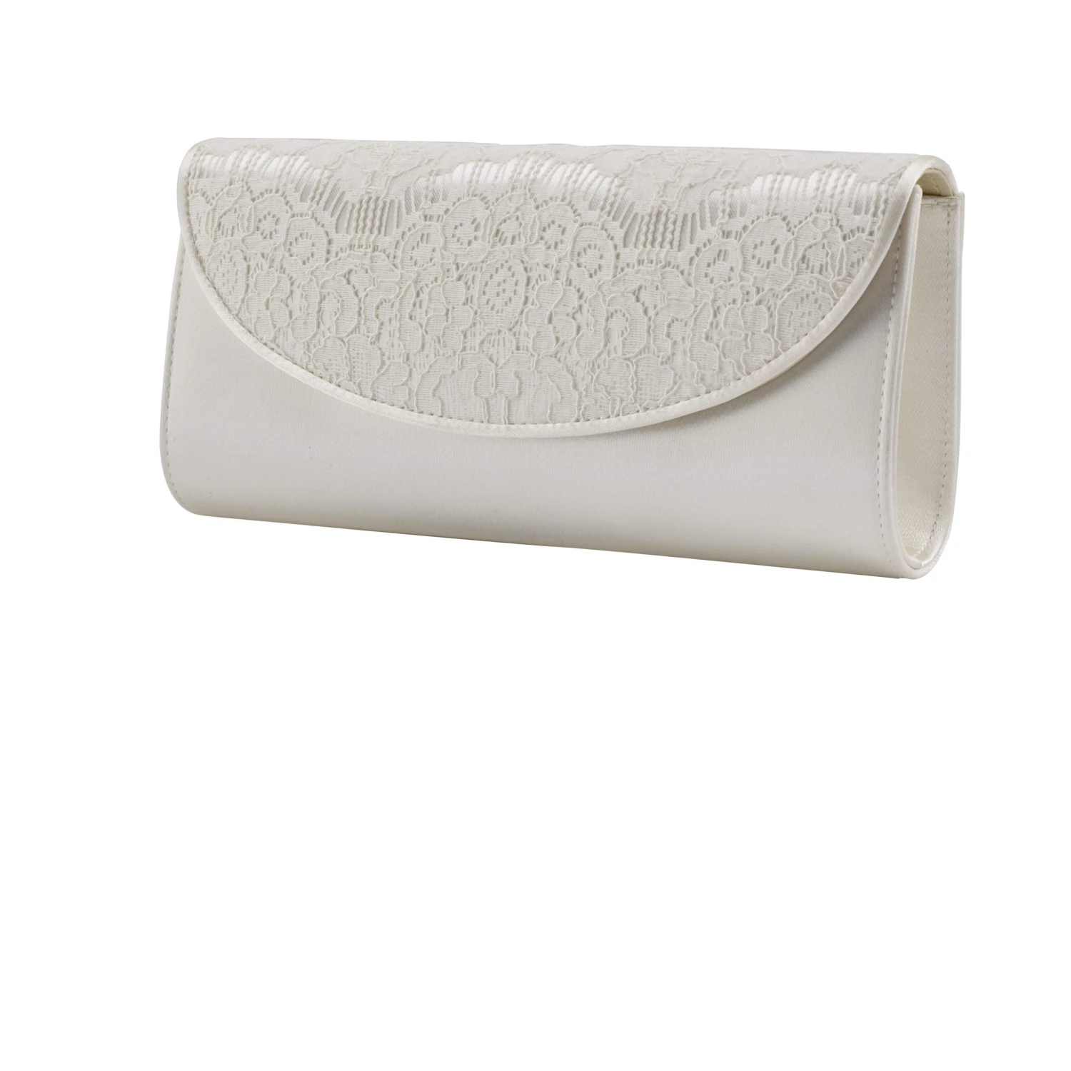 Rainbow Club Melody Handbag. A vintage inspired handbag in Ivory Satin finished with a Luxury Lace flap and satin piped detail!