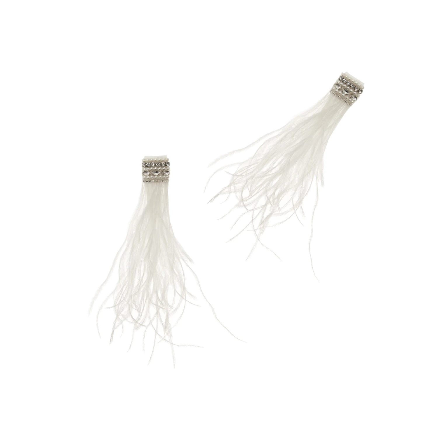 Rainbow Club Sassi Shoe Trims. Sassi is an elegant bridal shoe trim consisting of silver beads and white feathers forming a pretty, floating piece to attach to the front of an ankle strap and fall down the front of the foot!