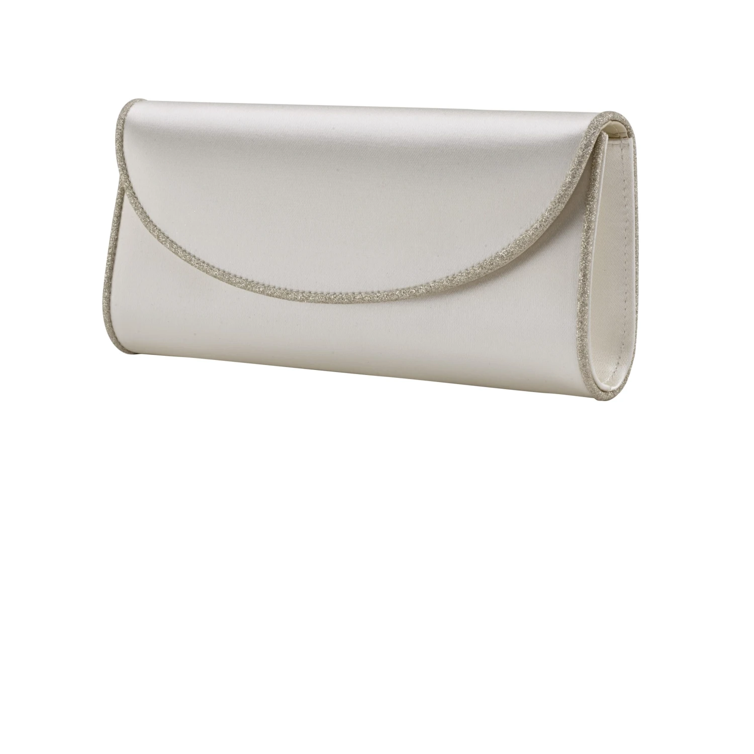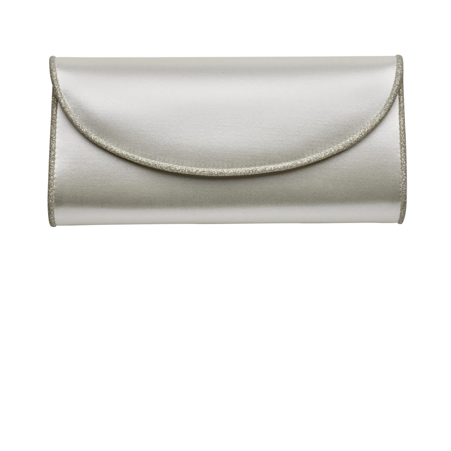 Rainbow Club Viki is a sophisticated handbag in Ivory Satin and piped with an exclusive Italian Silver Fine Shimmer!