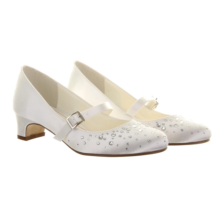 Rainbow Kids Communion shoes. Cherry are the perfect satin communion shoes for any little princess complete with cute Mary Jane inspired strap, sturdy block heel and adorned with sparkly diamante crystals!