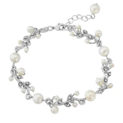 Sass B Silver Starlet Bracelet. High quality bracelet embellished with simulated ivory pearls and clear rhinestone crystals on a Rhodium plated finish! A beautifully delicate and romantic bracelet that will complement almost any bridal look!
