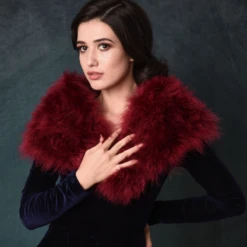 Sass B Vintage Inspired Marabou Feather Stole in Wine – the most glamorous bridal cover up you will find! A stunningly luxurious vintage inspired wedding shrug with the softest Marabou Feathers and hook and eye fastening.