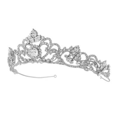 Sass B Davina Bejewelled crystal tiara. Embellished with high quality Russian man-made diamonds in a romantic scroll design on a high quality silver plated finish – Truly stunning!