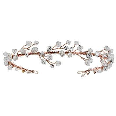 Eliza vintage garland style bridal headband. A stunning, crystal embellished headband with flexible clear crystal beads wired onto a high quality rose gold headband. An illusion effect bridal headband with beautiful vine sprays set with sparkling crystals!