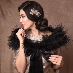 This stunningly glamorous ostrich feather shurg will eminate Old Hollywood Glamour – wear with a traditional gown to add texture or with a silvery beaded gown in light pastel hues to add a touch of vintage chic!