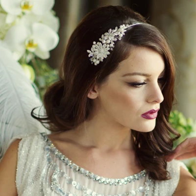 The Scarlett is a stunning, medium-sized headband for the bride, bridesmaids or flower girls who want to add side-detail to her overall hairstyle. The headband is perfect to complement a crystal detailed wedding gown or to create a hint of vintage!