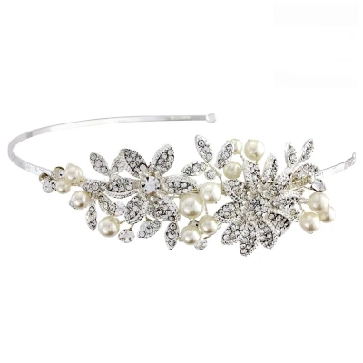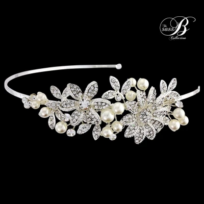 Sass B Scarlett bridal headband. Stylish and Romantic design with an exquisite combination of clear crystals- faux ivory pearls and luxurious beadwork which combine to create a true treasure. Headband is silver plated!