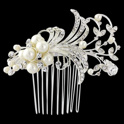 Sass B – Vera Pearl Hair Comb in Ivory and Silver. A vintage inspired wedding comb with simulated ivory pearls on a silver plated finish!Â