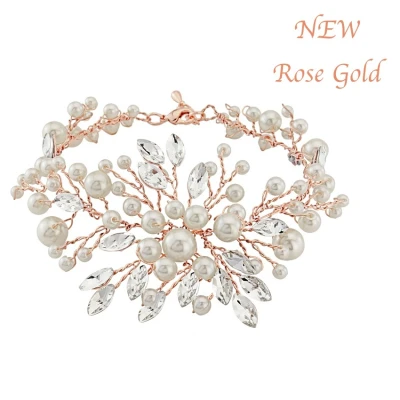 Sass B Divine freshwater pearl bridal bracelet – an utterly stunning and perfectly chic luxury freshwater pearl bracelet crafted with pearl flowers, crystal centres and crystal studded leaves for added detail on a Rose Gold finish!